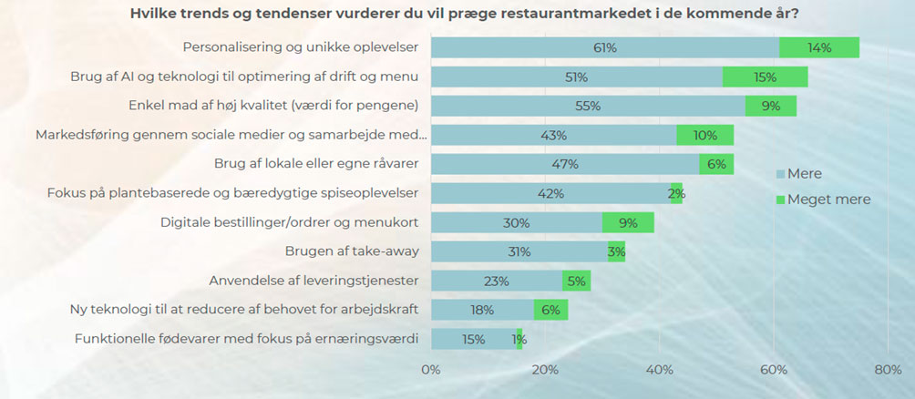 Øverst på listen ligger personalisering og unikke oplevelser. Hele 75 pct. af de adspurgte restauranter vurderer, at dette vil få mere betydning de kommende år.